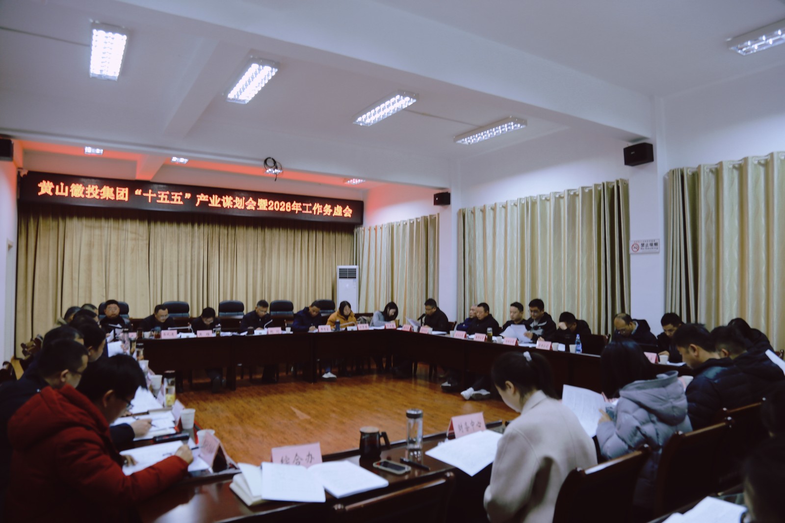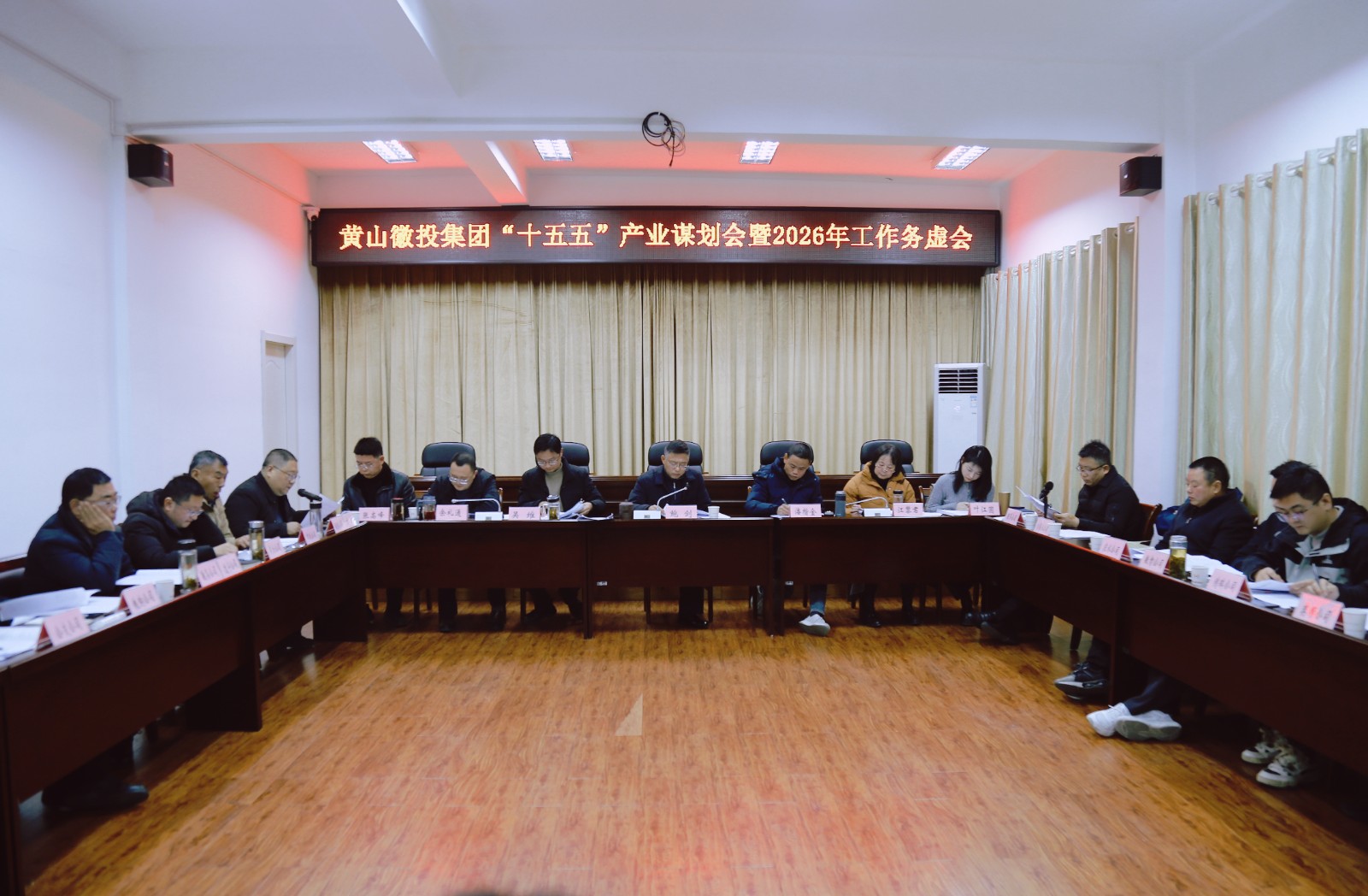 1月12日,黄山徽投集团党委书记、董事长鲍剑主持召开集团“十五五”产业谋划会暨2026年工作务虚会,研究谋划“十五五”及2026年重点工作,集团领导班子成员、集团各部门、各子公司主要负责人以及规划编制单位负责人参加座谈。