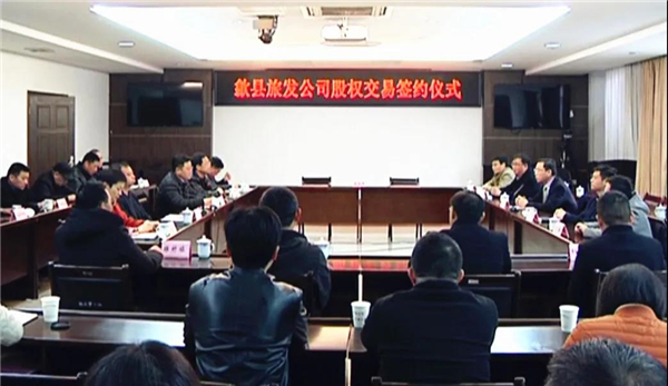 3月1日,歙县旅游发展有限公司股权转让签约仪式举行。县长吴旭光,县委常委、副县长汪洪涛,副县长江成永与安徽广电集团代表一起出席签约仪式。