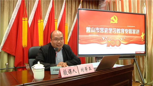 4月27日,黄山徽投集团举行“举旗帜 送理论”党史学习教育宣讲报告会,市委宣讲团成员、黄山学院历史学博士、马克思主义学院副教授刘芳正同志到会作宣讲报告。