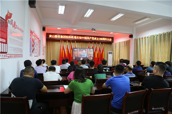 7月1日上午8时,庆祝中国共产党成立100周年大会在北京天安门广场隆重举行,中共中央总书记、国家主席、中央军委主席习近平发表重要讲话。黄山徽投集团组织党员职工共计150余人集中收看庆祝大会。