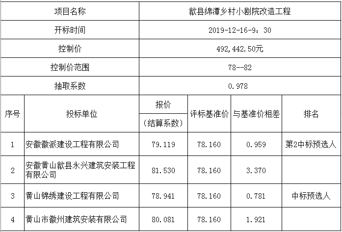 歙县绵潭乡村小剧院改造工程小型项目第一阶段比选公示