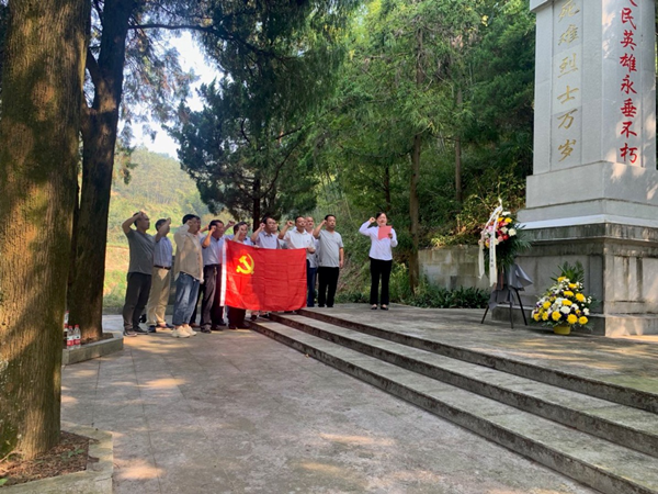 9月27日,歙县购销有限公司支部党员和积极分子共15人赴歙县霞坑镇萌坑村开展革命传统教育活动。在萌坑群山环抱翠柏掩映的革命烈士纪念碑前大家认真聆听了解了革命奋斗历史,以敬献花篮的方式向烈士表达了无限敬仰之情。随后在纪念碑前所有党员重温了入党誓词,庄重的誓词彰显了公司粮食战线上的全体党员不忘来时路,牢记初心使命的坚定信仰和理念。