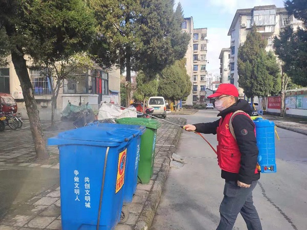 党员志愿者方向协助包保小区开展消毒工作